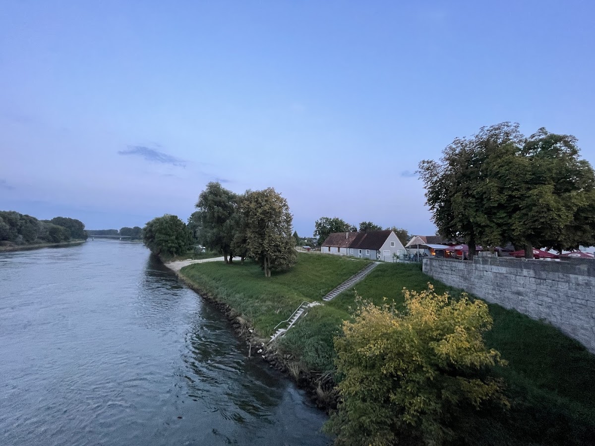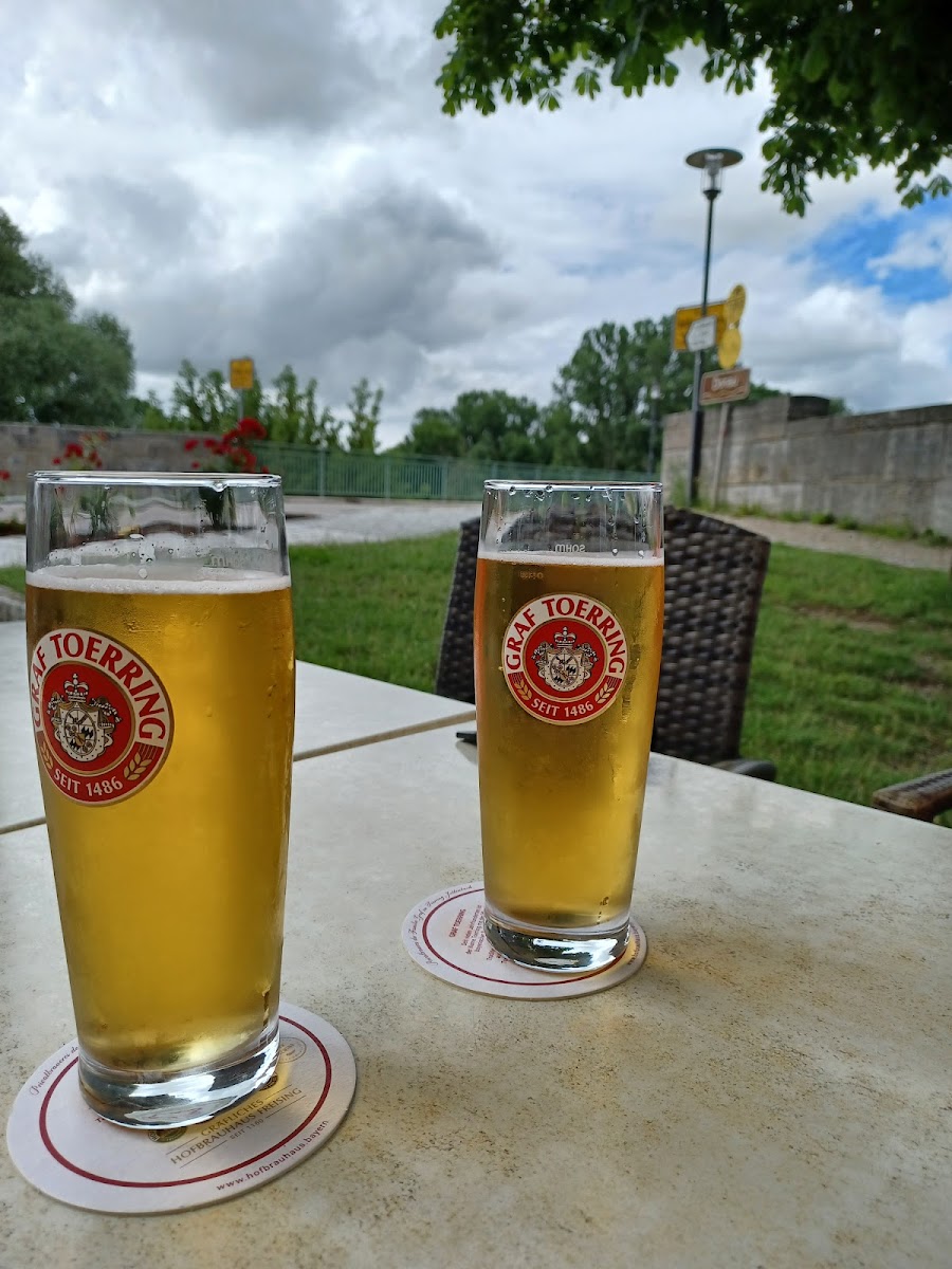 This Italian ice cream/pizza place is right next to the Danube river water level monitoring station (Pegel). We moored our inflatable canoe there, got out, put our stuff to dry next to the restaurant and enjoyed two big glasses of Weissbier. That was a pretty good deal. It's right next to the free campsite of Vohburg, so it's very nearby for cyclists and other outdoors tourists.